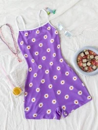 SHEIN ICONSHEIN ICON Combinaison d'été décontractée pour femmes, blanc et noir, pour sortir, sexy, tennis, course, yoga, sport, navette, encolure en cœur, avec passepoil contrastant, manches courtes, été