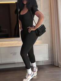 Combinaison pour femmes AiTyi, bien ajustée, décontractée, col en U, couleur unie, mode sexy, silhouette mince, confortable, polyvalente pour les sports d'extérieur. Convient pour la remise des diplômes, le carnaval, Pâques, les festivals de musique, le printemps et l'automne. Combinaison moulante à manches longues en tricot élastique.