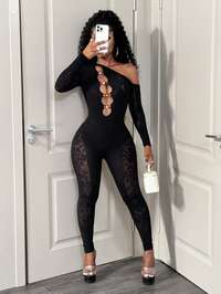 MUSERAMUSERA Combinaison courte sexy avec bretelles spaghetti, décolleté ouvert, détails en dentelle, dos lacé et ouvert. Idéale pour les sorties en club, les soirées, les concerts, les vacances, les fêtes, etc. Élégante pour l'automne, l'hiver, le printemps et l'été.