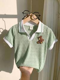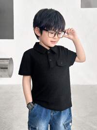 ZikoriSHEIN 1 pièce Chemise polo à manches courtes avec texture, style décontracté scolaire et mode polyvalente, coupe ample et souple, version coréenne, convient pour le port quotidien, les sports, les sorties, le campus, les rassemblements, les festivals, la photographie au printemps, en été et en automne