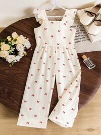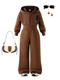 2 pièces, décontracté, élégant, doux, mignon, tenue pour filles, jeans, vêtements d'automne/hiver pour tout-petites filles, Top jacquard de couleur unie et combinaison jean avec broderie chat 3D avec nœud à l'avant, doux, confortable, respirant, convient pour le quotidien, les vacances, les fêtes, les sorties