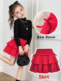 Maija KidsSHEIN Jupe froncée à la taille avec cordon de serrage, couleur unie, style streetwear jeune fille. Rouge pour le réveillon de Noël, la maison, les sorties décontractées, élégante et simple. Idéale pour les mariages, l'automne-hiver, les fêtes, le quotidien, les anniversaires, les tenues de princesse. Assortie mère-fille et entre sœurs.